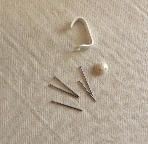 石膏ボード用フックについてるピンがたくさん余ってたので、それを使いました。