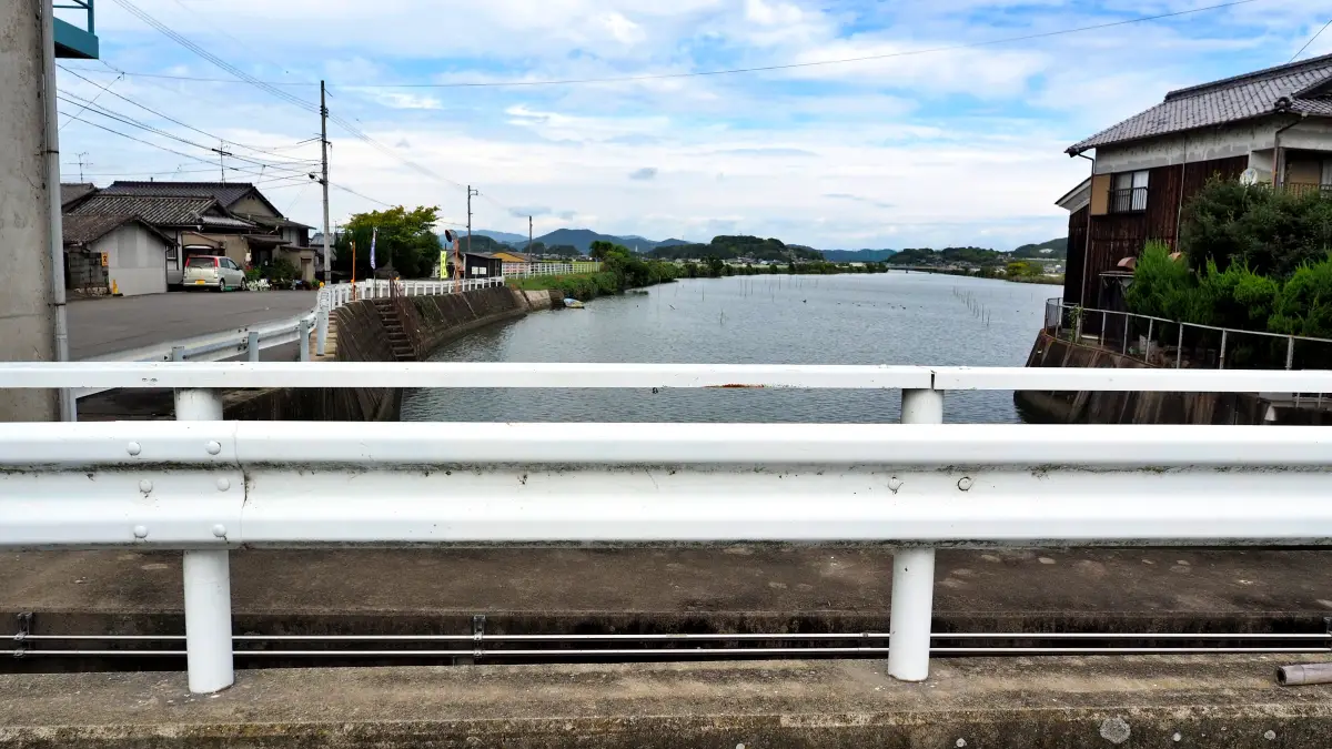 幅約110メートルの川の中央に、ぽーんと集落が浮かんでいるように見えるのは、 実は川と海の境目に築かれた堤防の上にあるからなんですね。